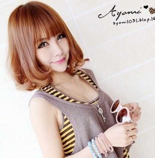 较显甜美的韩式短卷发,蓬松的梨花烫卷弧度,包裹出一张精致又好看的小脸型,碎发的长齐刘海搭配后,倍增可爱和优雅迷人呢!