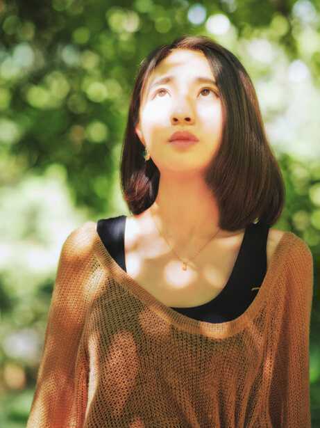 阳光底下的女生,披着一款齐肩的短发造型,很好彰显出清新浪漫美感,搭配露肩上衣,非常好看的。