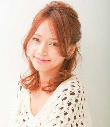修剪出齐肩长度的短发,一头挑染的橘红发色,洋气又时尚,蓬松凌乱的半扎发搭配外翻刘海,超甜美的公主头就完美打造出来了。