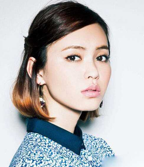 渐变发色的公主头短发发型,大侧分刘海往后挽起的头发设计,凸显最美妆容,耳际的几缕头发,更是让女生倍增气质优雅。
