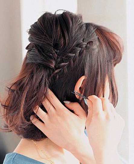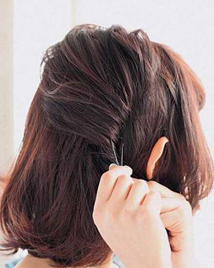 1、从头顶取适量的头发,朝脑后略偏右方向拧转。