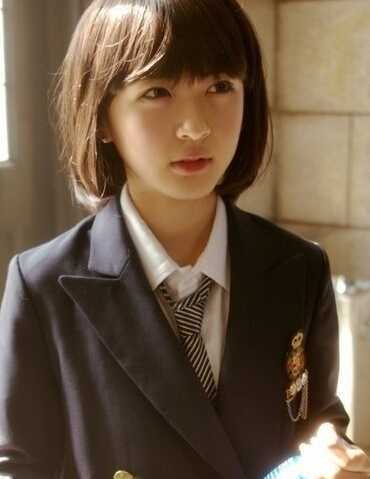 适合女学生的一款发型设计,波波头的短发,看起来清纯又显可爱十足!碎发修剪的齐刘海搭配后,瞬间演绎出地地道道的甜美韩国范。
