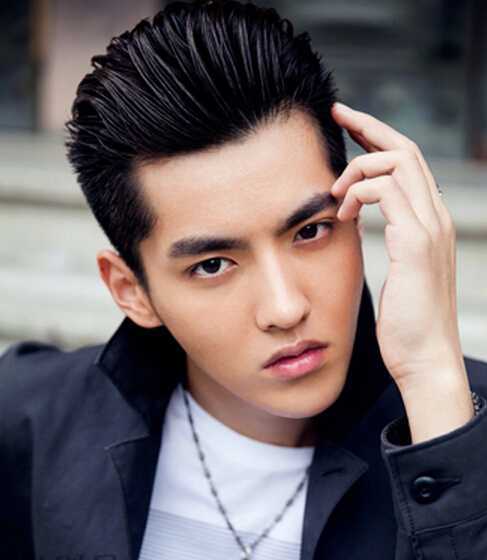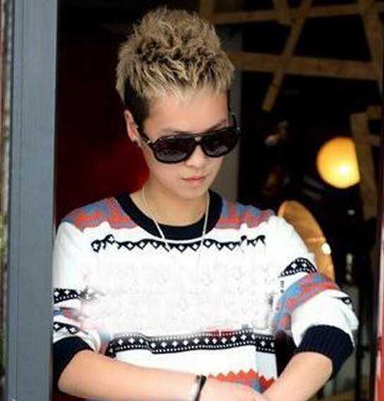 发型点评:把头发修剪出立体的feel,让中间的头发向上竖起,打造出蓬松感。两边清爽短小中间立体的朋克发型给我们带来酷感十足的潮男气息。