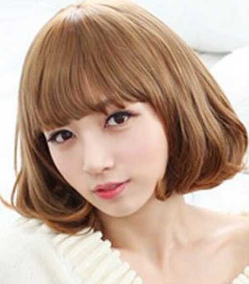 这款短发发型采用浅棕色染发,轻薄的齐刘海展现出女生清爽甜美的妆容,柔顺的发丝,内扣的发尾设计,非常凸显优雅气质的一款展现瓜子脸发型。