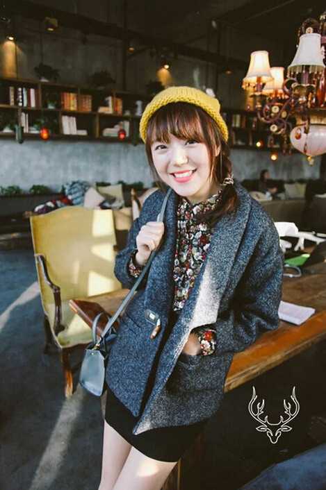 发型点评:将棕色的齐肩短发扎出低马尾麻花辫,侧搭在毛呢外套边,十分动人好看,再搭配上可爱齐刘海与针织帽装饰,MM甜蜜的一笑,你心动了吗?