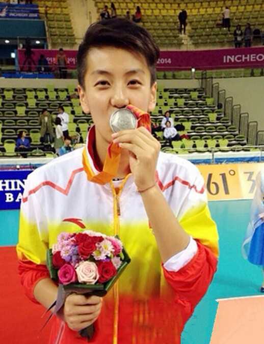 屈居于亚军的她,开心微笑的她亲吻着努力辛苦得到的银牌,一头侧分的头发更是爽朗可爱,亚运会上让她迅速爆红,简直帅哭了。