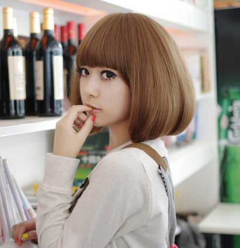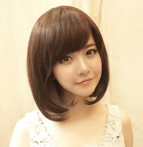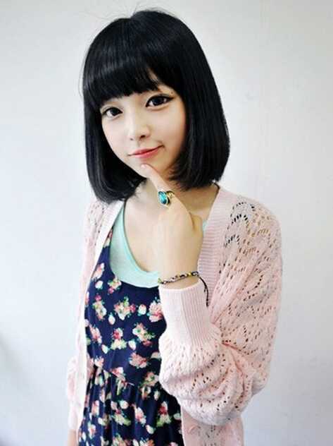 厚重的齐刘海修颜又显可爱,很多女生都喜欢哦,配合及肩短发,乖巧可爱,黑色发色更显健康亮丽,特别适合学生一族,头发不是太长,刘海也不会遮眼,特别可爱。