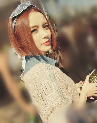 及眉的齐刘海凸显电力双眸,将短发打理出蓬松力挺的效果,令脸部看起来更加精致小巧,一边头发别在耳际后面,露出白皙的脖颈,棕黄色的染发打造出时尚OL的冷艳气质。