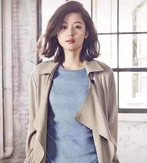 5、由女神全智贤演绎的中短烫发,出来的效果极具优雅都市女郎范,刘海大侧分,梳出耸起状,从耳下开始烫卷,微卷的弧度很知性优雅,漂亮!