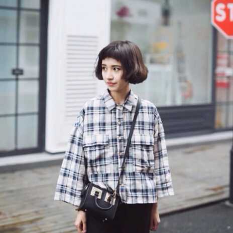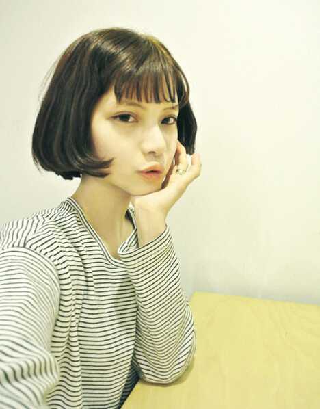 学生内扣短发2、狗啃式刘海,搭配极简内扣短发,有个性又不会太明显,这种内扣短发对脸型比较挑,像瓜子脸、巴掌脸配这款发型会很好看。