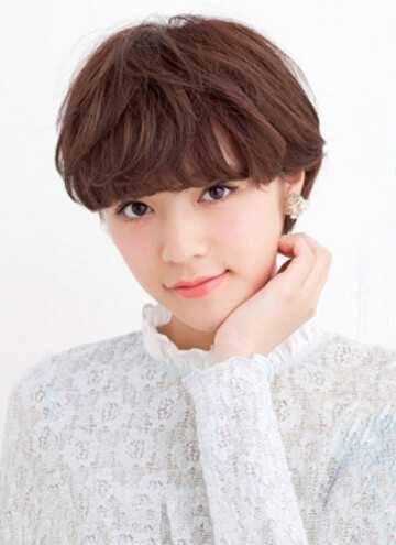 这款短卷发清新甜美又不失女人味,内扣式齐刘海凸显出一双电力双眸,轻盈灵动,搭配蓬松的蘑菇头短卷发,令脸型看上去显得精致小巧,十分俏皮吸睛。