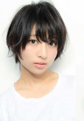 一款非常适合在校MM的短发发型,自然的黑色发色散发出清纯靓丽的气质,齐耳的短发沿着脸型修剪出层次感,盖住两颊的肉肉瞬间瘦脸,简简单单也很美!