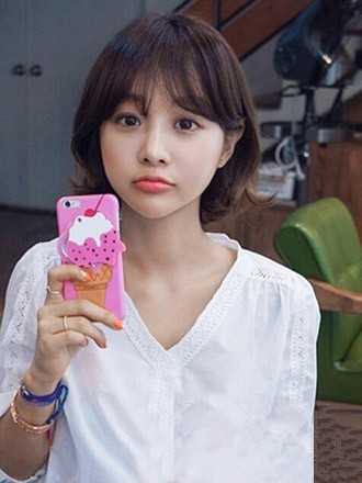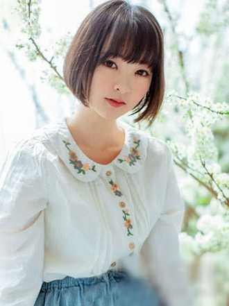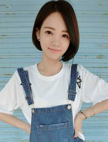 这款短发偏日系风,弯弯的齐刘海修颜极佳,耷拉在眉前,尽显呆萌可爱,顺直的发丝不经任何修饰,随意摆动,清新飘逸,显得女生温婉内秀,气质极佳。