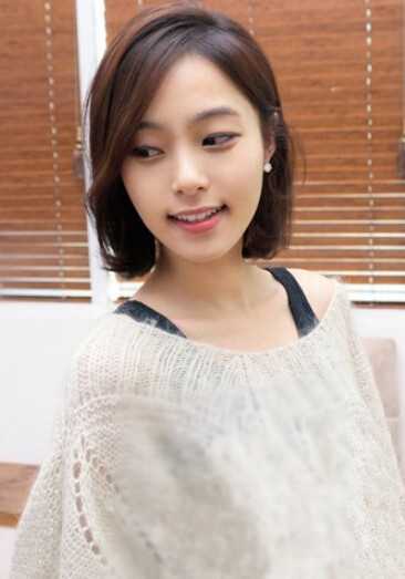 一款非常适合白领美眉们的韩式短卷发,大片的斜刘海自然地顺着脸颊垂下,修出一张巴掌小脸,搭配上比较简单的发尾外卷的造型,显得更加知性柔美,气质满分!