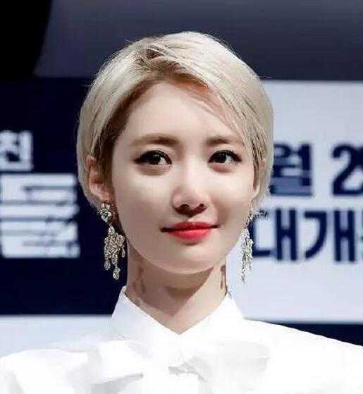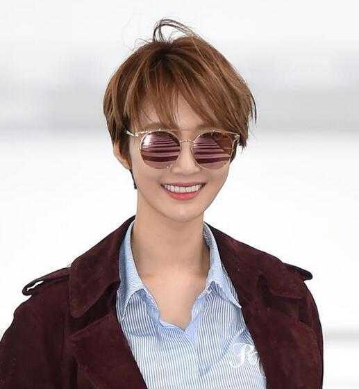 高俊熙最近的短发造型,碎长刘海,两侧短发露耳,头发染上黄棕色,头发很短很清爽,看起来像个假小子却非常好看。