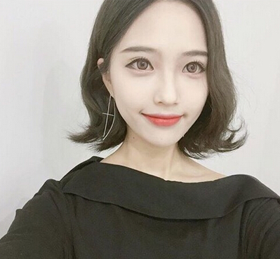 这款整体效果俏皮灵动的萝莉短发真的是会令人一眼就喜欢上,把头发刚好剪到比耳朵稍长的长度,然后用内扣卷的方式将发尾进行热烫,热烫后发尾自然而然就与耳朵齐平,可爱俏皮的整体效果就出来了,再配上这款时尚精致的妆容,萌感度瞬间翻倍。