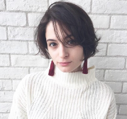 这款凌乱又不失自然的纯黑短发是小编最爱的一款造型,别看它四六分的刘海搭配着蓬松度十足的黑发造型并不是非常的可爱,但是它的优点却是可御姐可萌妹。如果你想要把它的整体感觉变得可爱青春些,就不需要在发型的基础上打发胶,只需简单的一步梳理,纯黑小碎发就能轻松打造出俏皮感,可谓是一举两得。