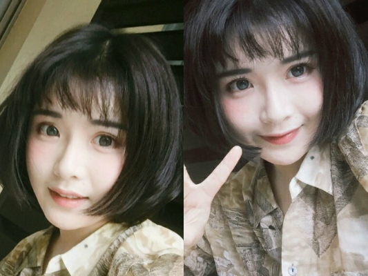 最后,爱靓小编给大家推荐的是这款清纯+清纯风格的空气齐刘海短发发型,微微内扣的发尾超遮肉显瘦,自然黑的发色十分自然好看,整款发型简约得来很有气质。