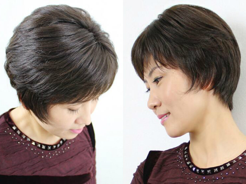 设计简约的中老年短直发假发十分自然、清爽,特别适合朴实了一辈子的妈妈。该款假发采用真人发丝精制而成,外观逼真,质感超好,妈妈们佩戴起来一定特别大方好看。