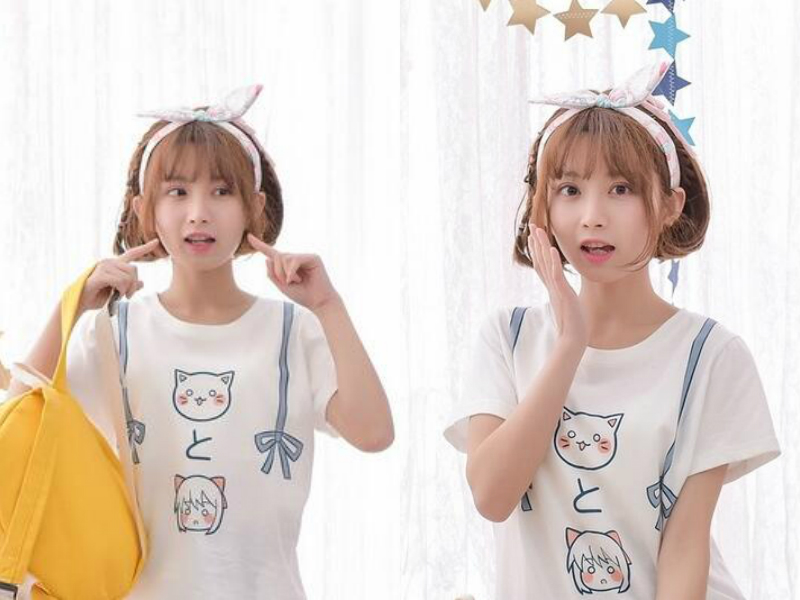 第一眼看到这个蘑菇头发型就觉得很卡哇伊,暖茶色的染发青春甜美,空气刘海的设计修颜显瘦,齐耳的头发长度和肩膀的距离形成两条平行线,看起来恰到好处,更显得神清气爽,再戴上一个兔耳朵发箍,就充满精灵般的灵动感,为整个造型加分不少。