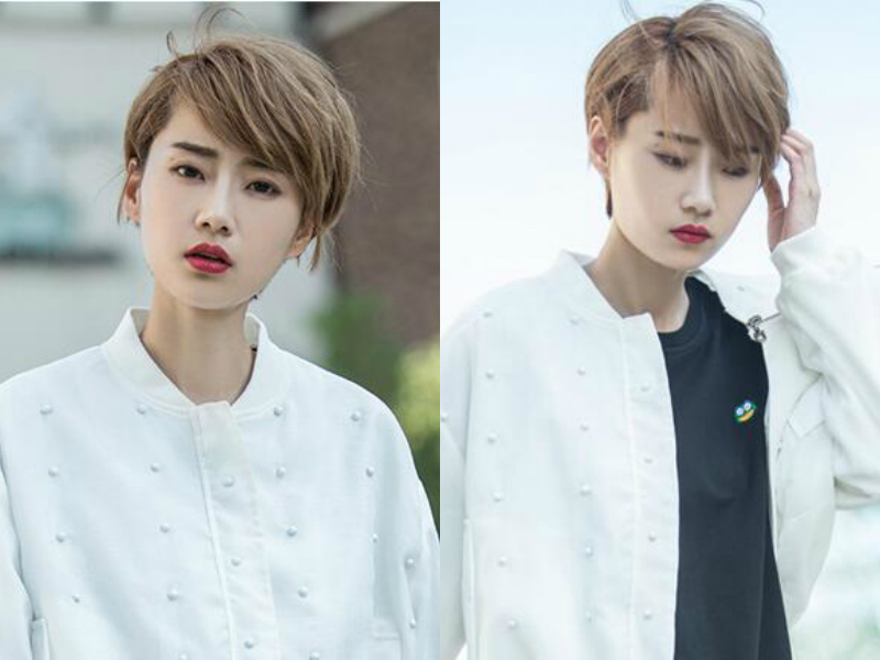 现在很多女生喜欢boyfriend风格的发型,觉得很酷,那么这款中性的蘑菇头就很适合你们。削薄的发型尾部贴着耳朵上方,使得顶部的头发变得轻盈,淡漠的表情搭配低调的亚麻发色增添一股冷冽的气息,看起来个性十足,不竟觉得女生也可以这么酷帅。