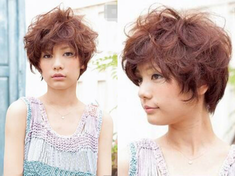 这款齐耳短发发型通过短发烫卷的处理,使整个发型显得卷曲膨胀,弯曲的刘海随意的遮挡住额头,既摆脱了长脸的困扰又不失活泼,鬓角的头发遮住耳朵贴着脸颊,起到修饰脸部轮廓的作用,让脸型看起来也小很多。
