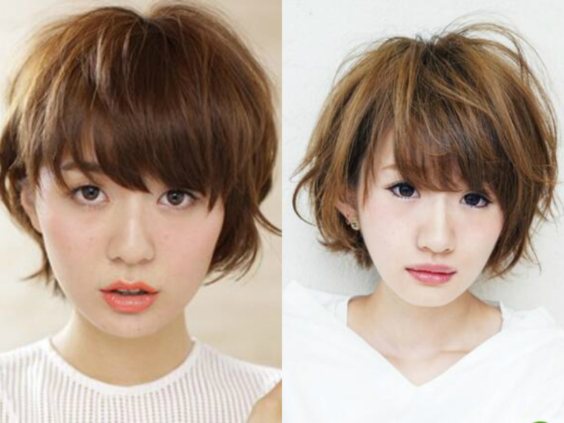 这款蜂蜜茶色的齐耳短发发型看起来非常温暖,可以传递给人一种干净纯洁又无公害的气质。从发顶延伸出来的不规则刘海长过眉毛,让人看不出女生的发际线在哪,这样女生的长脸脸型也没那么明显了,将齐耳的短发一侧轻轻夹至耳后,露出女生优美的脸部线条,更突出五官的立体。