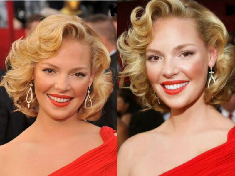 这是款非常富有女人味的欧美短卷发发型,减去了长卷发带来的繁杂感,显得更清凉些。向外卷曲的发丝富有动感却不觉得凌乱,卷翘的刘海向上竖起再使其贴在额头上定型,天然的金色头发颜色显得欧美人本就白的皮肤更加的白皙,搭配露肩礼裙,露出锁骨显得异常性感。