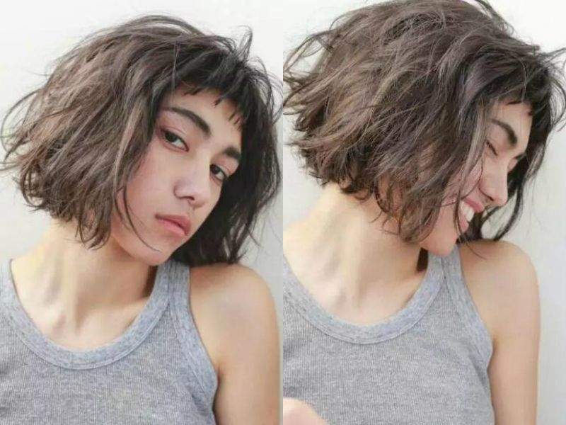 如果你本来剪了一头清爽的短发,因为某些原因准备留长发了,可是又不知道如何渡过这个短留长的尴尬期的话,不妨先试试这个齐耳短烫发发型哦!一头短发经过简单的卷烫,再打理出凌乱感,不过眉的二次元刘海精灵俏皮,两侧蓬松的烫发遮住脸颊,突出脸型的小巧,加上妹子自在的笑容让人看了便觉得整个造型很舒服。