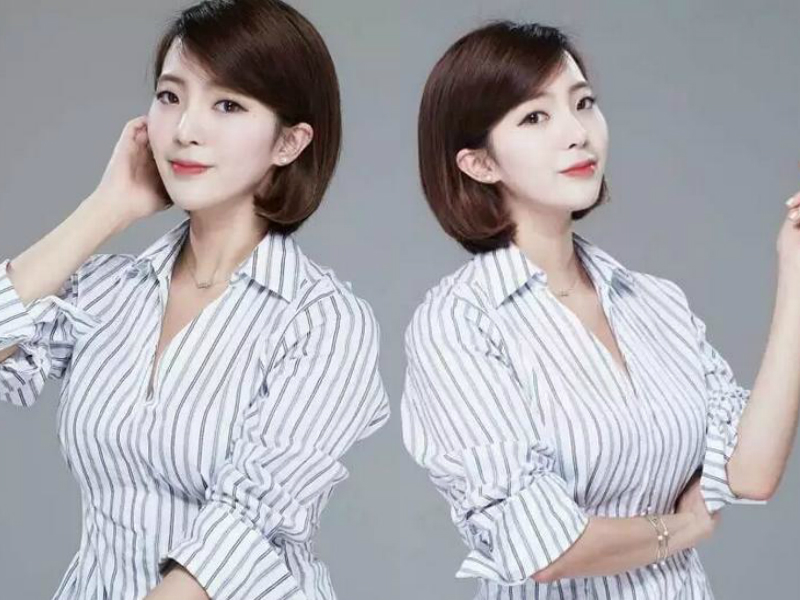 近几年这种弧度刘海的发型十分受职场女生的欢迎,不但简单好打理还很时尚。一九分的刘海以半月的形状划过额头与一侧头发一起夹至耳后,不仅修饰了额头还把女生柔美的脸部线条呈现出来,内翘的发尾刚好贴着衬衣领,显得利落有型,侧面烘托出女生工作中不喜欢拖泥带水的性格。