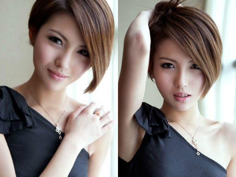 如此帅气的女生短发,你敢尝试吗?不同于前一款刘海短发发型的甜美,这款大侧分的短发造型更显酷帅有型,侧分的长刘海几乎包住半边脸颊,脸型因此修饰得十分精致,简单的染发将气质很好的衬托出来,既百搭又时尚,搭配黑色斜肩连衣裙,彰显着满满的职场女强人气场。