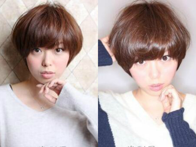 发量多的妹子不妨试试这款超短的锅盖头发型,一头秀发厚重蓬松,发尾紧贴耳朵,形成上宽下窄的造型,可爱之余更是凸出女生下巴的尖细,而且整齐的刘海沿着脸型剪出弧度状,更是凸出妹子灵动的大眼睛,充满着日系女生呆萌的气息。