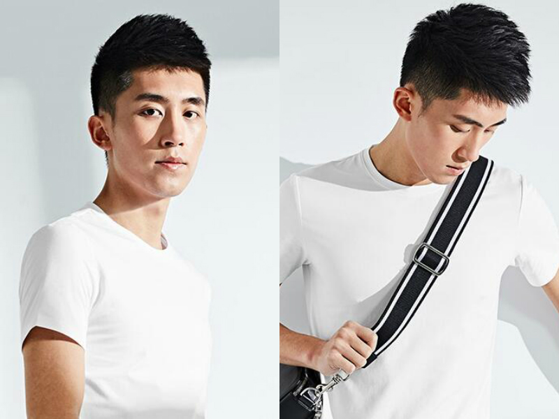 对于男生来说有刘海的发型一般更显暖男特质,但是有些男生却喜欢无刘海的发型,因为那样显得man一点。长度刚好的发丝用发蜡定型竖立,露出光洁的额头和阳刚的脸型,展现出满满的男人味,纯黑的发色经典又百搭,搭配polo衫又显得男生很有绅士范,想必这样的帅哥走到哪里都很受欢迎吧!