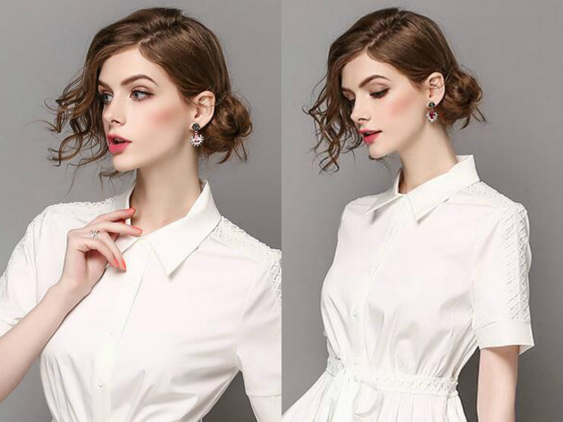 不得不说这款撇耳发发型的设计风格很大胆,却也很时尚。头发侧分后没有把经过卷烫而变得极具卷曲弧度的头发藏起来,而是留其随意的垂落在脸颊旁,看起来别有韵味,另一侧却相反,发丝被整齐地撇至耳后并卷成一个小花苞贴在耳后,露出女生优美的脸颊线条不说更是突出了女生修长的脖子线条,优雅的气质油然而生。