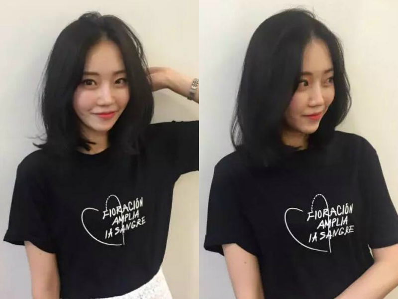 中分的刘海设计也是当下较多妹子的选择,它除了清爽透气之外,也可以对脸型起到非常棒的修饰作用,妹子本就长了一张好看的鹅蛋脸,刘海中分后脸蛋看起来更加娇俏可人,两侧头发轻盈干爽,发尾及肩更突出妹子尖细的下巴,笑起来脸上那可爱的苹果肌让人有种捏一捏的想法。