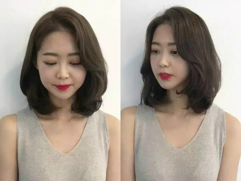 这是一款偏分的韩式及肩短发发型,刘海偏分后一侧夹至耳后,一侧则卷曲着向外滑落,营造出的线条曲线更使妹子增添了柔美感,两侧发尾修剪到及肩的位置并融入内扣处理,蓬松的头发呈括号状轻轻包裹住脸蛋,让妹子看起来更显甜美。