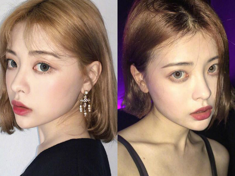 对于吃货来说,蜂蜜茶是很多妹子们都超级爱喝的饮料,那么采用在染发的颜色上,也是极其的出色的,这两款蜂蜜茶发色的齐脸短发,不管是搭配空气感的刘海,还是中分的刘海,都是美美哒,完美的修饰出你的小脸蛋。