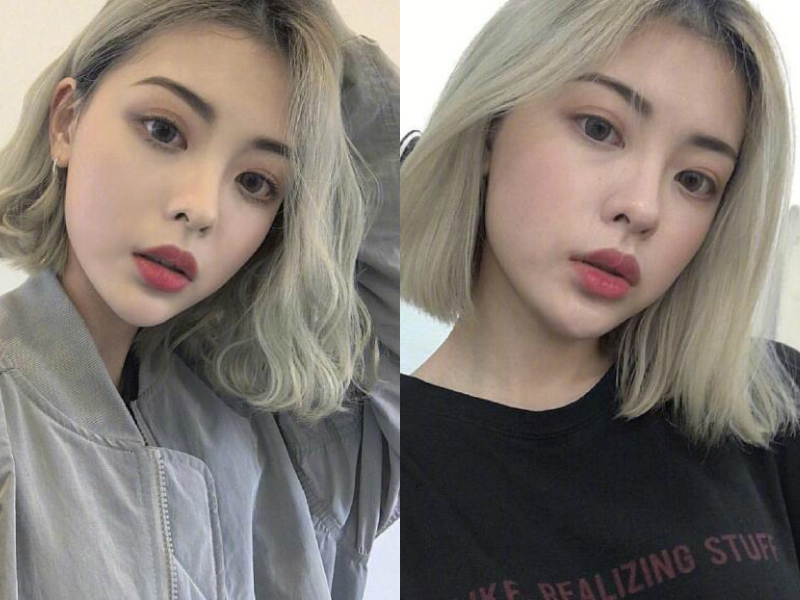 这种亚麻灰发色的染发,是和奶奶灰很接近了,同样看起来也是相当的出彩的,但是这款亚麻灰染发相对来说比较多妹子们容易接受,没有过度的个性潮流,这样的发色不管搭配直发或是卷发的齐脸短发,都很美腻,也显脸小!
