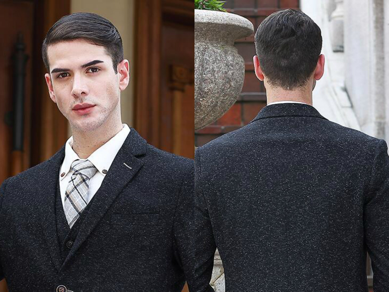 相信女生都是喜欢成熟稳重的男生的,因为他们给人一种安全感,看这个男士就是如此。正面看发丝梳理得异常服帖,一九偏分的造型设计大方有型,脸上留出一点点胡子的痕迹,为男生增添成熟魅力,从后面看发丝修剪得一样干净利落,搭配修身的西装看起来更有成功人士的feel。
