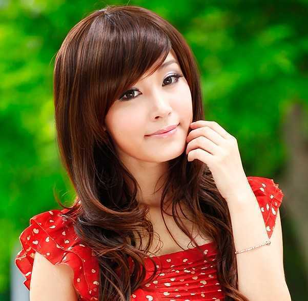 蓬松卷发发型第三款:栗色的斜刘海卷发发型