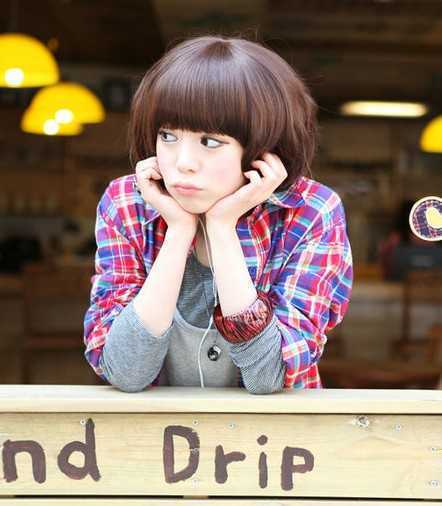 蓬松卷发发型第五款:波波头齐刘海卷发发型