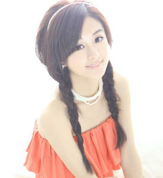 天气热了,把卷发编成两条可爱的小马鞭,可以清爽一夏哦!头顶上搭配一个时尚的珍珠发箍,萌爆了!