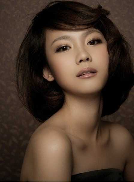 斜刘海,甜美哦,两颊大幅度向内弯的头发,不仅可以修饰脸型还很显气质,把头发塞到耳后,多了几分妩媚感,很显气质的一款短卷发。
