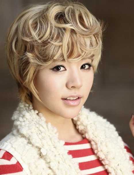 将前面刘海弄成凌乱的卷发,慵懒的感觉,黄白色的头发,时尚感十足,搭起来就是一个时尚又休闲慵懒的小姑娘。