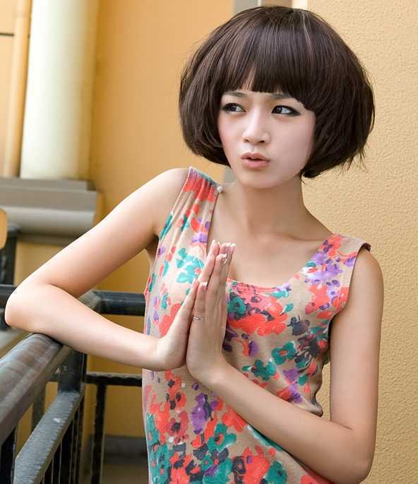 碎碎的齐刘海,蓬松的蘑菇头玉米烫,不仅修饰脸蛋还可以显小脸蛋哦,蓬松蘑菇头显得好可爱,再来一个卖萌的表情,超惹人喜欢哦。