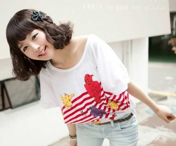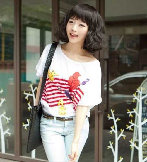韩版可爱的蛋卷头,蓬松的蛋卷发型,脸瞬间显小哦,碎碎的刘海,添了几分甜美,搭上甜美可爱的表情和甜美的发饰,超可爱哦。