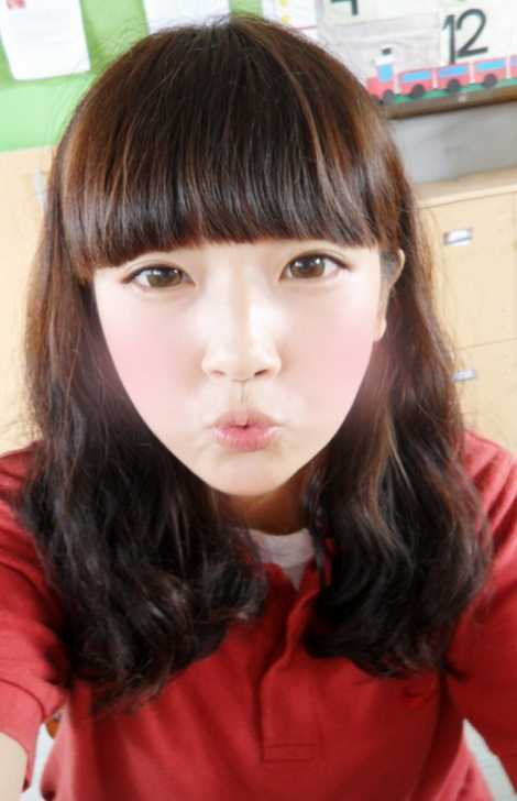 超可爱的齐刘海蛋卷头,齐刘海显得眼睛大点了哦,把蓬松的齐肩蛋卷头往耳后塞,显得精致的脸蛋,略带黄棕的发色添了几分时尚感,卖卖萌,超可爱。