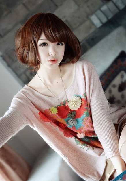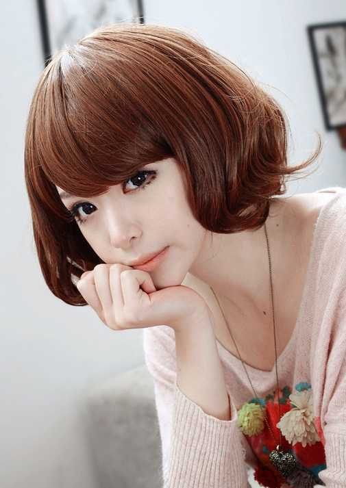 过耳的波波头蛋卷发,显得俏皮可爱,斜刘海添了可爱感,两颊弧度的蛋卷,超美超显气质,红棕色的头发显得甜美可爱,还添了几分时尚感,卖卖萌,超可爱哦。