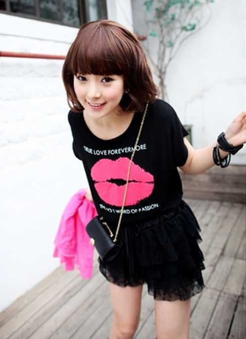 蘑菇头短短的蛋卷发,显得俏皮又可爱,拨上头顶的眼镜,气质一下子就出来了,好赞哦,卖卖萌,甜美一下,瞬间变身小女生,超可爱哦。