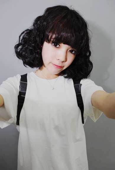 齐刘海显得有点小可爱,泡面感觉的蛋卷发,蓬松凌乱感的蛋卷短发,减龄效果也不错哦,乌黑的头发搭上这款泡面感的蛋卷发,有点小清新的感觉,还有修饰脸型,不错哦。
